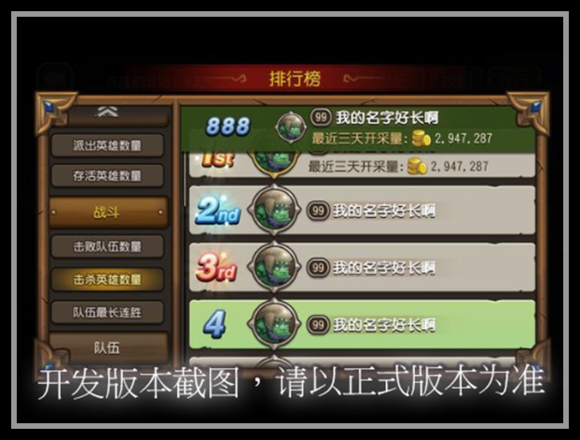 当然,除了奖励部份,队长大大们显示实力的排行榜功能必不可少。此次会同步新增公会战相关的排行榜功能,包括击败队伍数量、进杀英雄数量等多个榜单。