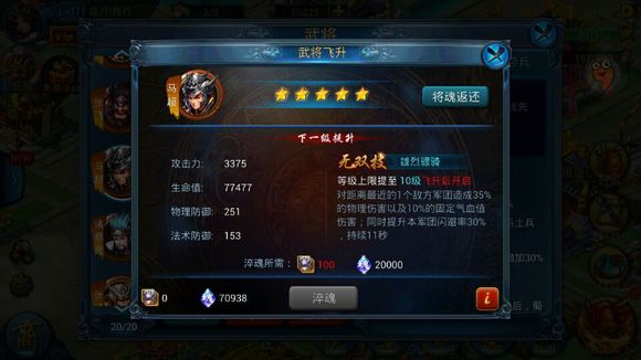 2、即便有横枪也不推荐练低星马超,输出能力不及金关羽、无双威力更是不及低星金关羽实用(晕眩),生存能力也不高(闪避数值太低)。