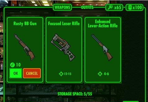 避难所除了门口外其他人员一律配备轻型武器(10瓶盖那种),门口布置穿动力装甲并且拿重武器的人,其余的武器一律卖钱,这样我们就能够获得大量瓶盖了。