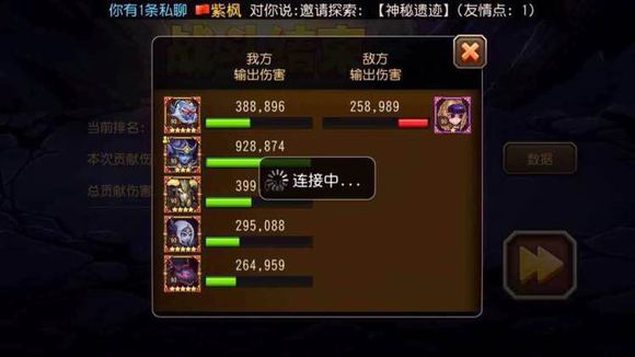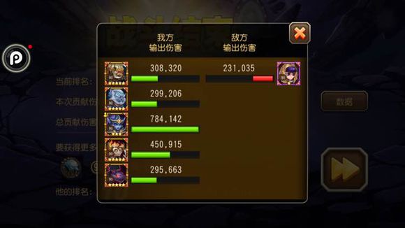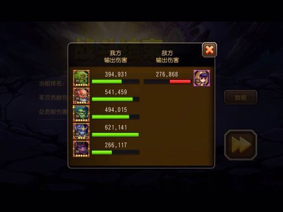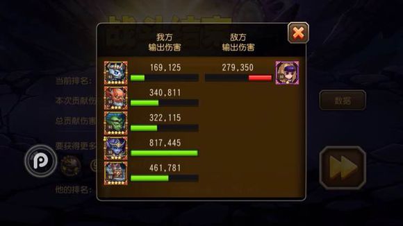 每天有5次免费攻击BOSS的机会,进入战斗不限制战队等级,只有橙及以上品阶的英雄可以参加战斗。下方的进度条是五个BOSS的血量总和,分为五个阶段,对应5个boss和5个里程碑。