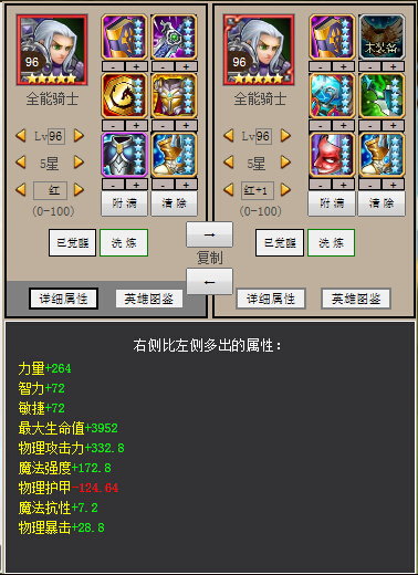 物理队的克星,人手一只可见其火爆程度。属性上就护甲大幅降低,其余属性均提升,但对于840护甲的全能来说不痛不痒,值得进阶。