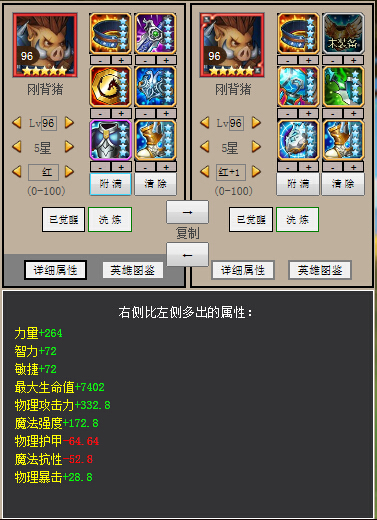 刚被猪改版后不再是那只开不出大招的板凳了,红色1阶段的装备非常亮,大幅度提升了生命值,仅此一点完全值得进阶。