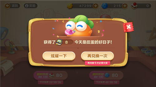 进入了扭蛋模式,大小两个扭蛋一直在那里絮叨着扭蛋成功的秘籍。扭蛋会为萝卜丝们带来经验、金币、道具,还有让人垂涎已久的角色碎片以及完整的角色奖励。只要颜值高,每天都能有上千钻的奖励哦o( ̄ヘ ̄o#)