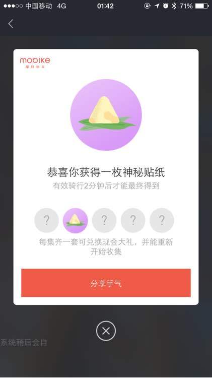 【为什么我的摩拜宝箱车骑行两分钟没有贴纸】