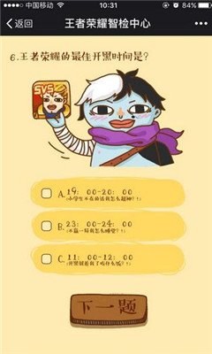 问题六:王者荣耀最佳开黑时间。我了个去,这个我回答不上来,蒙的。