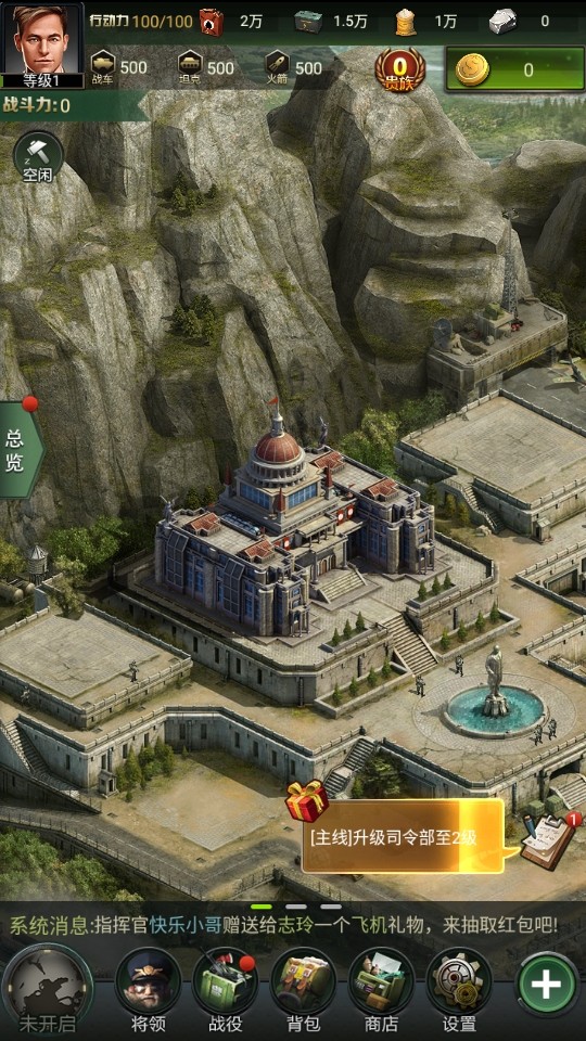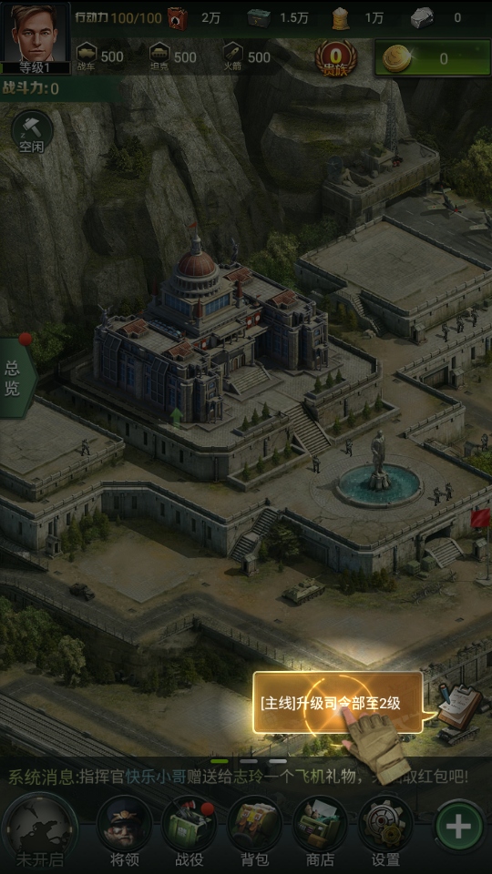 完成主线就能升级司令部等级了。
