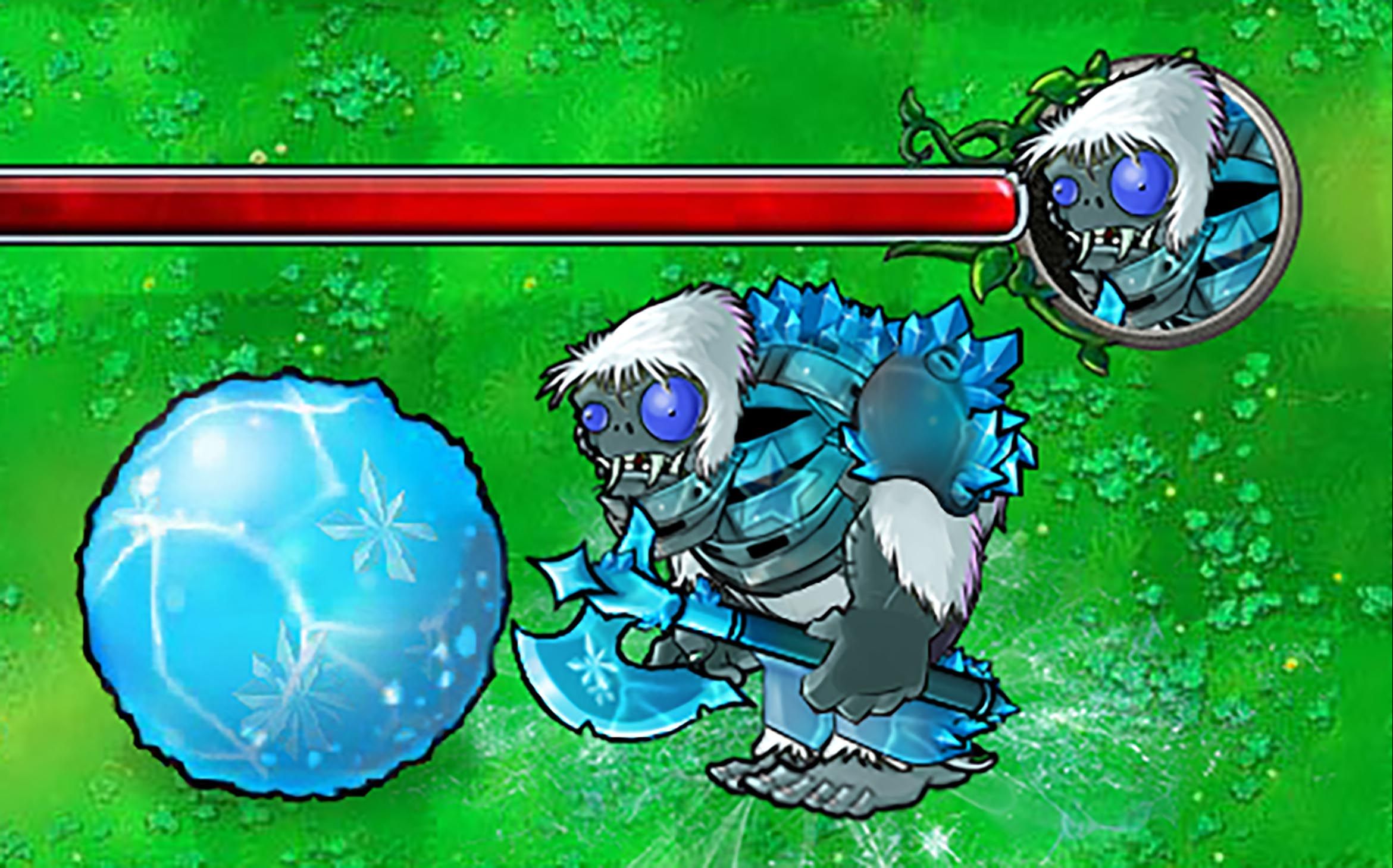 小型冰球:耐久1800(可被击破),能够阻挡子弹穿透,速度中等,可碾压植物并留下冰道,