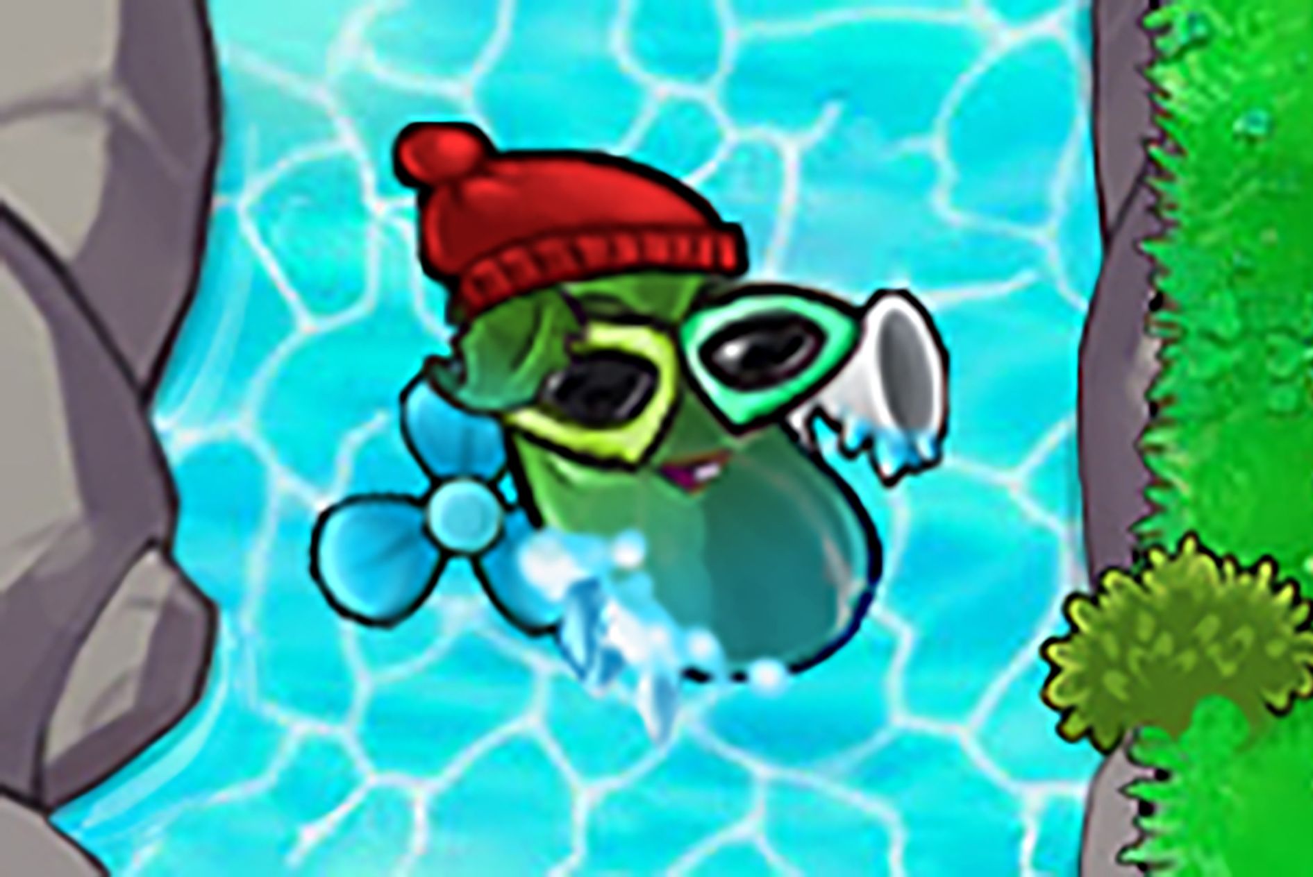 行为2:原地跳起,落地时碾压以自身为中心3×3范围内所有植物,并对全屏植物造成一次冰冻效果