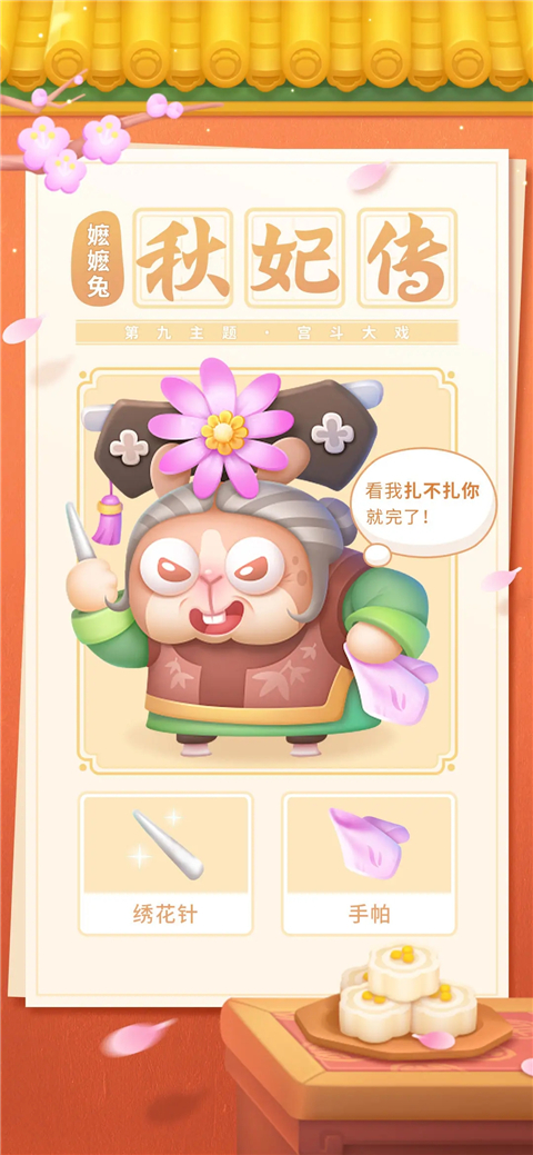看到嬷嬷兔的绣花针了吗?它可是嬷嬷兔的秘密武器!保护波妃的同时,记得提防嬷嬷兔的绣花针哟。萝卜丝们能猜到嬷嬷兔的特殊技能吗~