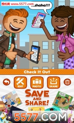创造伙伴只是开始!结合你的伙伴与风景,文字泡沫,和道具安排自己的自定义场景。你可以在场景中放置你喜欢的任何地方,并使用手势旋转和调整大小。为每个角色选择各种各样的姿势,并改变他们的面部表情以符合他们的心情。你可以在你的场景中使用各种各样的背景来帮助你讲述你的故事,以及你的朋友可以掌握的几十个道具。如果你的朋友有话要说,你也可以添加文字气泡和字幕到现场!