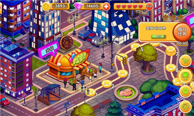 游戏中玩家将变身超级大厨烹饪全球美食,轻松驾驭多国菜肴。一边快速上菜,增长烹饪经验值,一边赚取金币和成就,扩张跨越全球的连锁餐厅帝国。