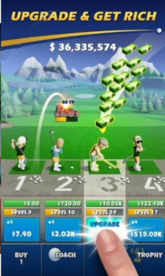 点按,升级并获取收益! 训练高尔夫球手并打造世界上最好的练习场!