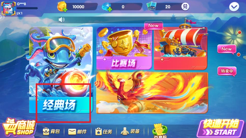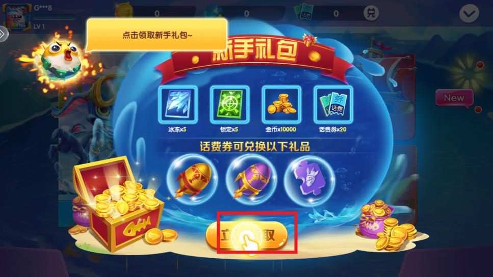 进入趣赢功夫捕鱼之后,领取全新的福利礼包,按照自己的喜好刷游戏;
