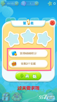 2.每一关的过关目标是不一样的,这可是,最低的要求哦,所以,游戏中,疯狂的点击,然后消除吧