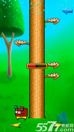 游戏中,你点击某一个方向,就会砍掉这边的树哦,如果不小心喷到树枝,则会立即死亡哦,而且时间有限制,可爱把握好啦