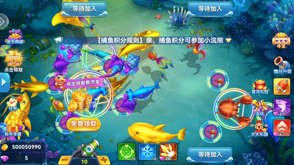 经典街机捕鱼玩法:玩家可以通过调整炮台倍率来捕获不同类型的鱼,操作简单易上手。