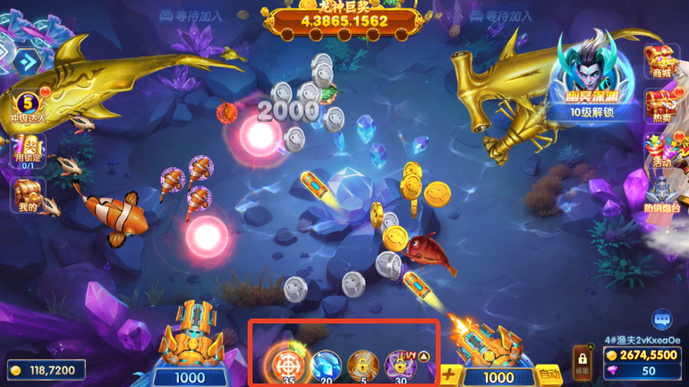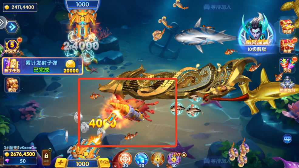 全新酷炫道具,猎鱼更加趣味,金鲨鱼,小丑鱼一网打尽