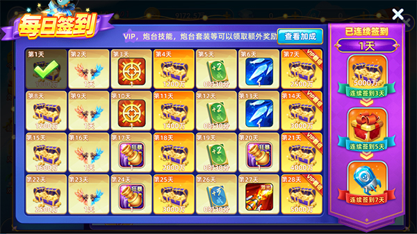 3、每天的捕鱼成就达到之后会有额外的奖励。