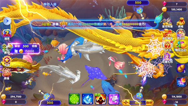 每种炮台与技能都拥有独特特效,击中瞬间反馈强烈,捕鱼体验更加畅快。
