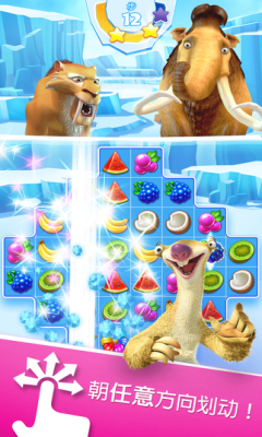 2、携手希德、曼尼和迭哥开启冰川时代冒险之旅,寻找《冰川时代:村庄》和《冰川时代大冒险》的开辟者们留下来的珍贵宝藏!朝任意方向滑动来制造3个及以上相同水果组合,与你最喜欢的冰川时代角色同台竞技,最终赢取令人艳羡的宝藏!在三消“对决”中挑战你的好友,向排行榜的巅峰位置冲刺!