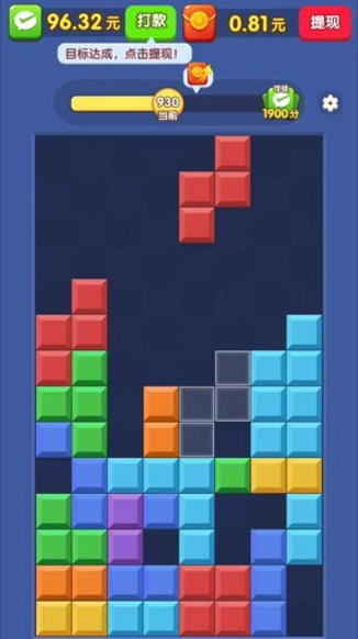 红包奖励机制:与传统的消除游戏不同,拼个方块不仅仅是为了解压,玩家在游戏中还可以获得红包奖励。这种激励机制让游戏更加具吸引力,增加了挑战的动力。