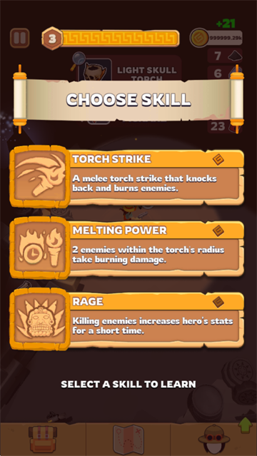 2、击败敌人可以获得经验,升级后还可以获得技能。