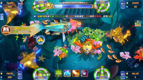 多种游戏模式:提供多种多样的游戏模式,包括单人对战、好友联机等,玩家可以根据自己的喜好选择模式,享受不同的捕鱼体验。