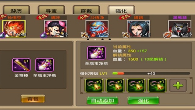1、游历:玩家可以操作骰子,每点一次,玩家就跟着骰子的点数移动,游历会碰到各种有趣的事件,有的会送法宝、有的会送神兵、有的会送行动力,当然也有什么事情都没有发生的事件。行动力是游历必须消耗的资源,每个小时可以恢复一点,每天凌晨3点玩家会返回起点,在12:00和20:00会额外增加5点行动力。