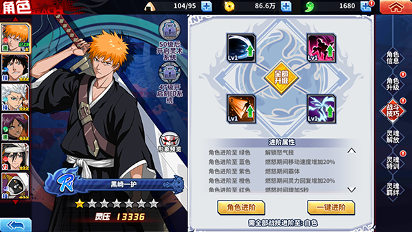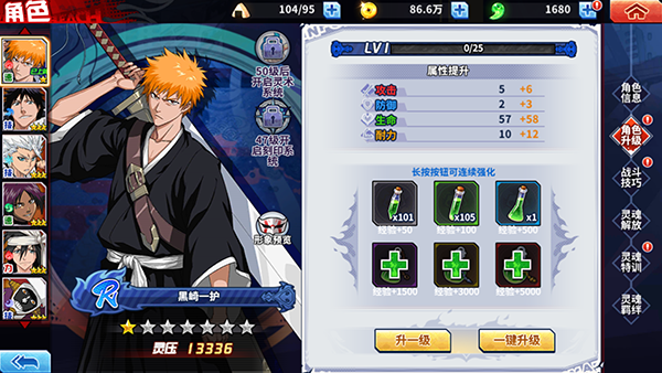 灵魂解放、灵络、锻魂等,以原作中人物成长的必经之路为核心,打造独具趣味的角色成长系统。多种可选择成长路线,确保每一个玩家的死神都将是“独一无二”。