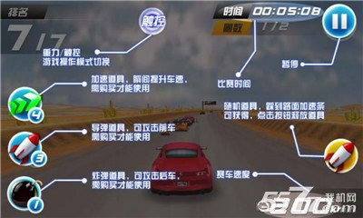游戏中玩家可以通过手机重力感应器控制赛车方向,也可以设置成手动控制方向,亲爱的小伙伴,赶快来开始游戏吧!