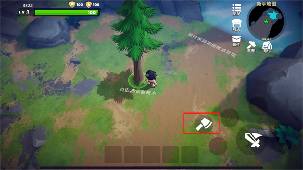 5、制作好的工具可以用来收集材料,如下图,小编制作啦一个斧头可以用来砍树;