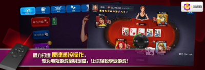 《有乐德州扑克》是中国第一款智能电视棋牌游戏,基于电视遥控器深度定制。使用遥控器的方向、确定、返回以及菜单键,即可轻松玩转,让你享受窝在沙发里打牌的轻松愉悦!1080P的全高清画质,前所未有的震撼体验,远非手机、Pad能比拟。