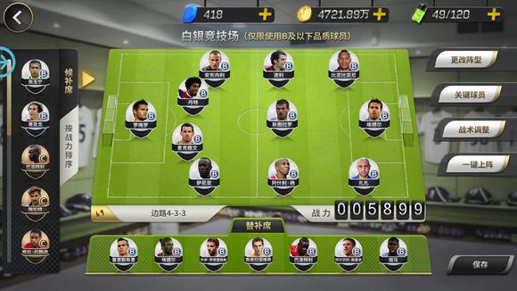 冠军联赛白银级别也就是只能使用B和C品质球员,在层主自己在办公室无聊罗列了所有B球员以及最佳搭档和技能搭配之后,推荐出一套阵容。433边路。特此说明的是B有两个埃德尔,一个意大利的,一个葡萄牙的。