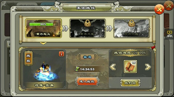 先来看看,军团战役中黄巾起义的胜利奖励: