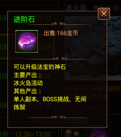 冰火岛副本,会在每天的11:30-12:00与17:30-18:00两个时间段开放,在冰火岛开始期间,玩家可以自由主城中的冰火岛主传送到冰火岛副本之中采矿。