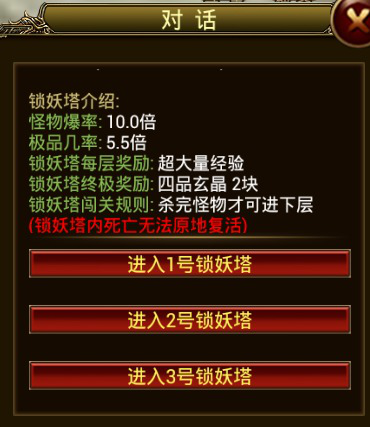 3:锁妖塔内死亡无法原地复活,是直接回到安全区