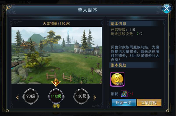 经验副本包含剧情副本、经验副本两种,其中剧情副本是根据剧情和等级的推进来进行的,不可重复。经验副本全天开启,根据VIP等级不同可挑战的次数也不同。两个副本都可以产出大量经验。