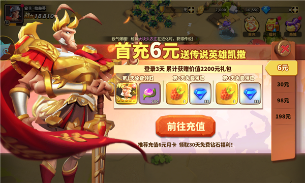 2、必不可少的当然是每日一次的高级招募令半价了,这是游戏中很高的折扣了,除此之外最高的是远征高卢中的部落集市的4折优惠。