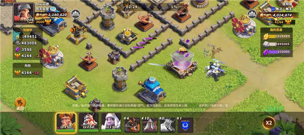因为这是前期攻略,资源还是挺紧张的,就算是输我们也不能浪费每一次掠夺机会,选一个资源仓库暴露在外的,用远程小兵或英雄打完就跑,一点损失都没有