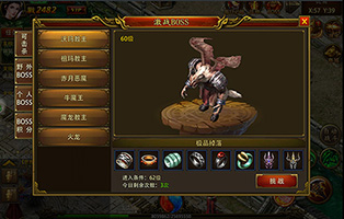 玩家60级以后可通过主界面右上方的激战BOSS图标进入BOSS积分界面。