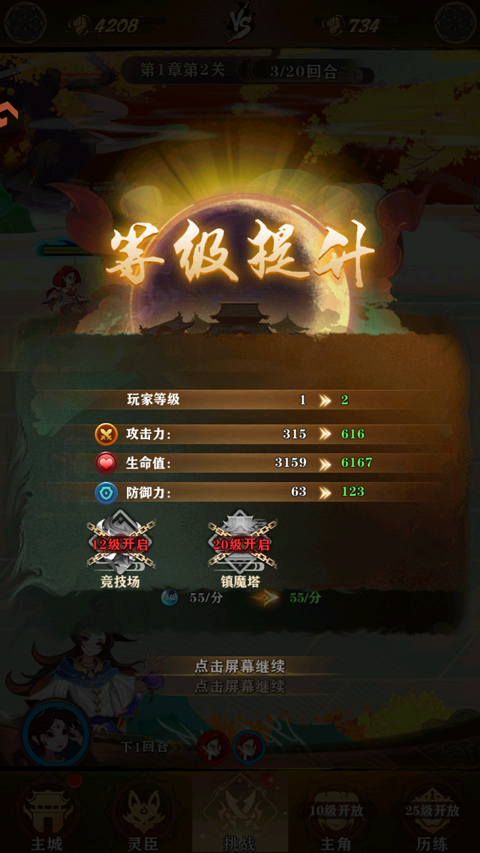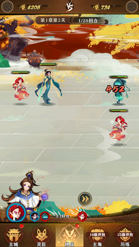 3、游戏战斗是以一人一回合制进行的。