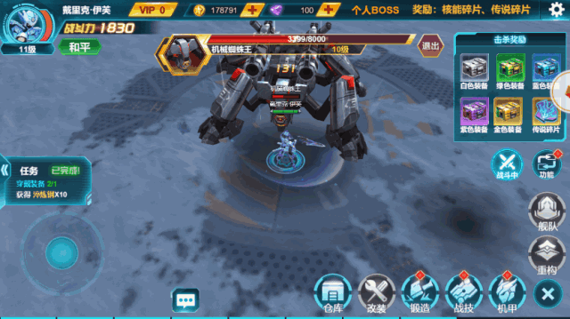 装备是机甲的重要组成部分,不同装备可以增加不同属性,从而打造专属于自己的机甲。通过主界面下方的图标进入装备页面。