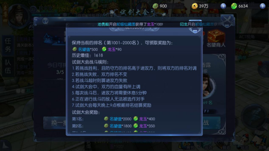 试剑大会每日会有排名奖励,且获得历史最高排名时也会获得龙玉呢