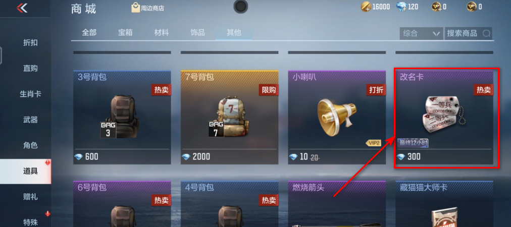 3.在其他一栏花费300钻石就能购买改名卡啦。