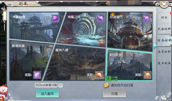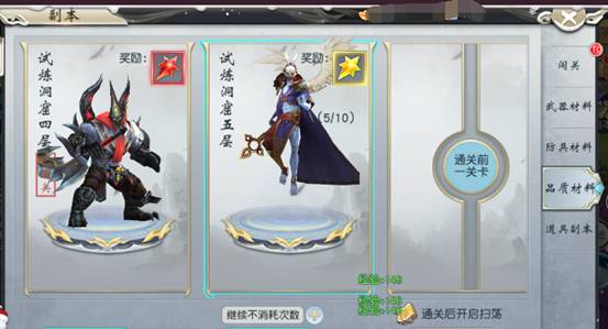 副本主要涉及各类系统的消耗道具产出,供于用户成长