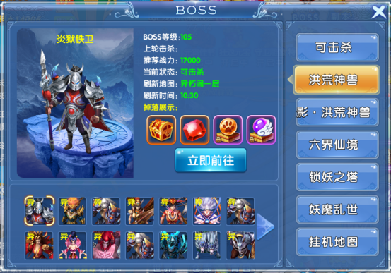 洪荒神兽:这里显示的boss都在异朽阁,异朽阁每层都会有boss,