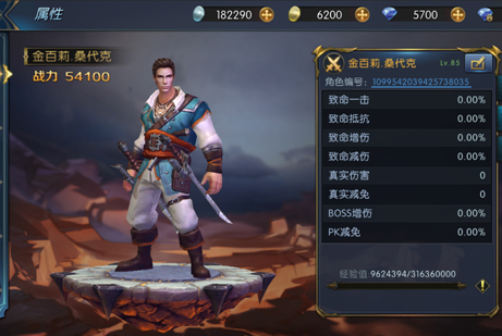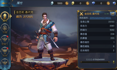 主要显示玩家的基础属性数值,角色编号,当前经验值等信息。