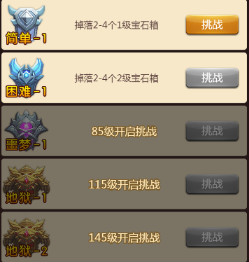 难度:副本都有简单、困难、噩梦、地狱-1、地狱-2