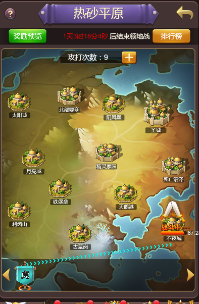 2. 领地战每天有10次挑战次数,每日刷新。