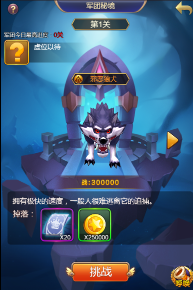 军团副本:每日0点更新,每天10次挑战次数,可以获得大量声望奖励。